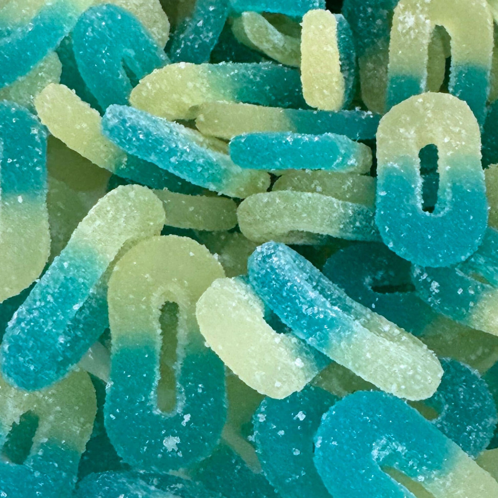 Anneaux Framboise 🔵🟢 : craquez pour ces bonbons fruités bicolores, au goût acidulé et sucré ! Disponibles en 100g, 300g et 500g. Une explosion de saveurs fruitées ! 😋